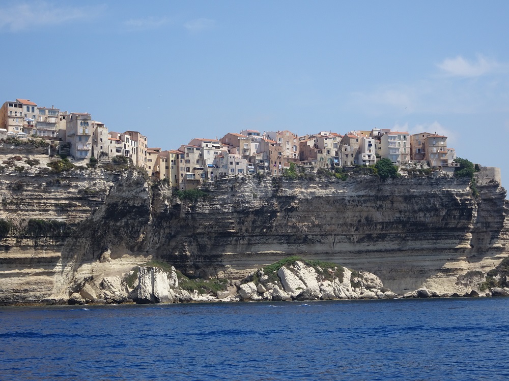 Met de boot zijn we vanuit Ajaccio naar Bonifacio gevaren. Blauwe lucht, nog blauwer water met langs de kust ongerepte strandjes en zelfs dolfijnen gespot onderweg. Bonifacio ligt op de meest zuidelijke punt van Corsica en is gebouwd op witte krijtrotsen. Aan de overkant kan je Sardinië zien liggen.